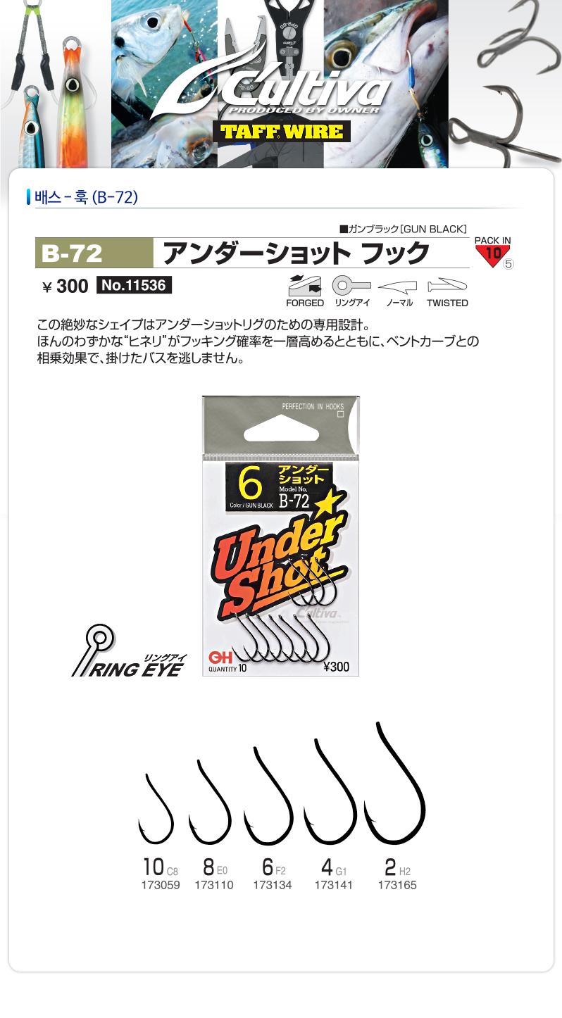 [컬티바] 배스-훅(B-72) 언더샷 훅