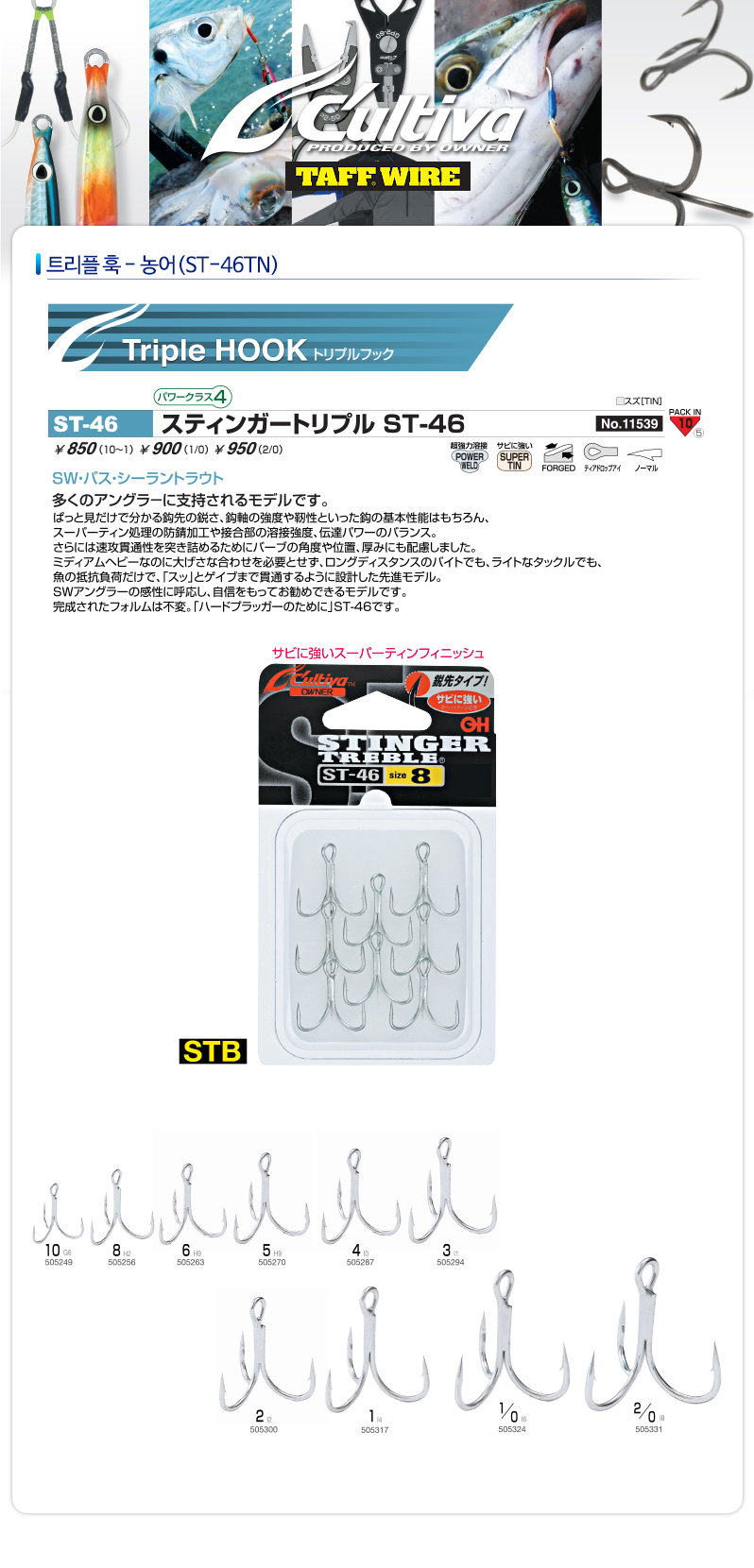 [컬티바] 스팅거 농어 트리플훅- (ST-46TN)