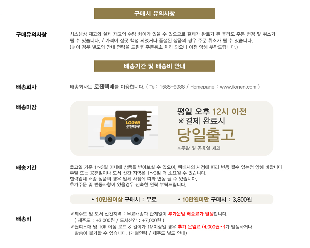 배송비 3,800원 (100,000원 이상 무료배송)