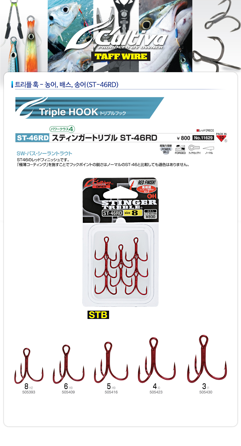 [컬티바] 스팅거 루어용훅 트리플훅- (ST-46RD)