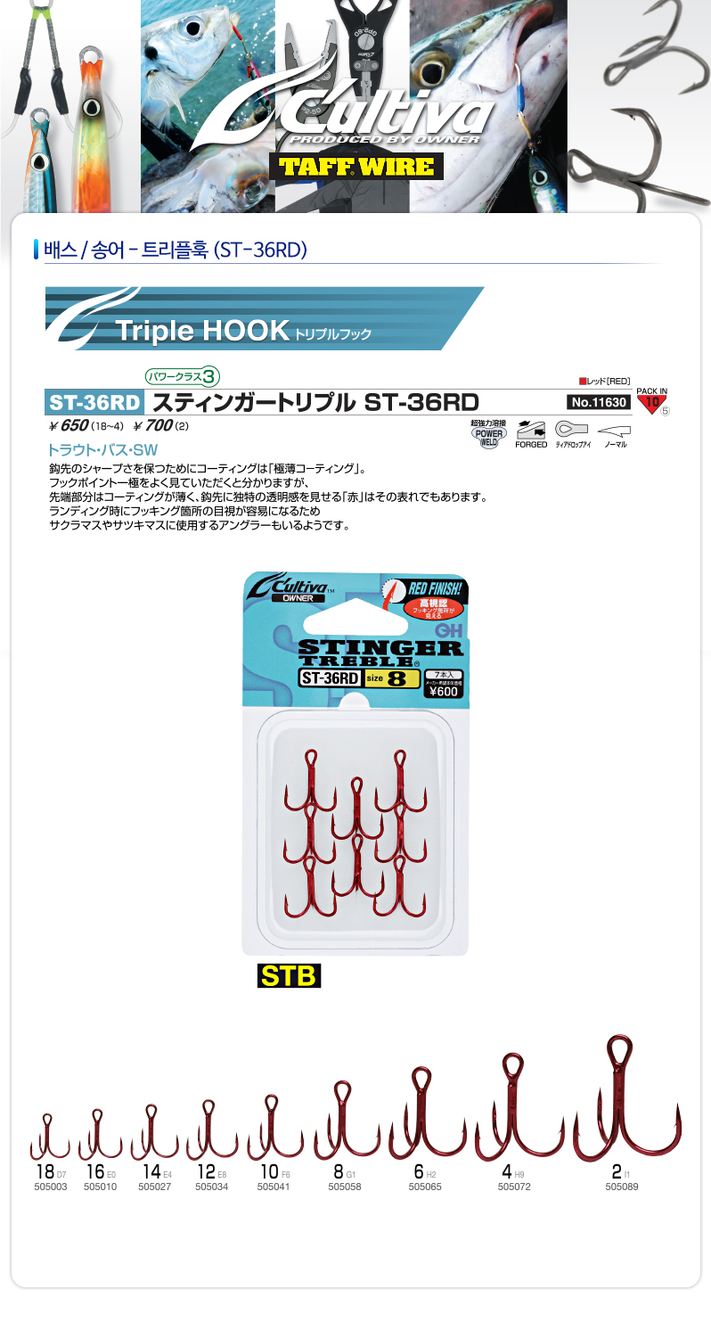 [컬티바] 배스 송어 트리플훅- (ST-36RD)