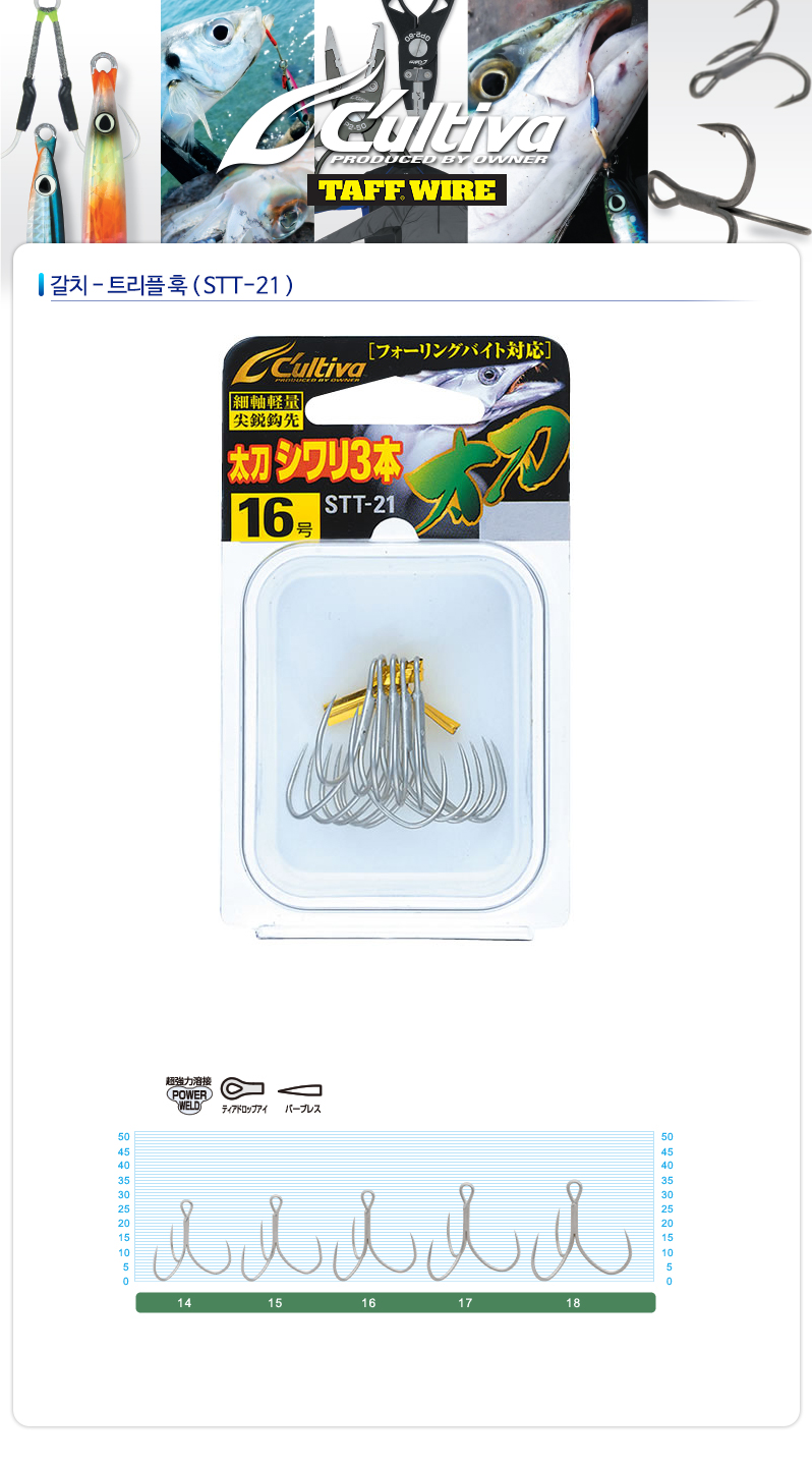 바늘 끝 : 극예(極鋭) 시와리(しわり) 타입 → 초예민 곡침형 바늘 끝이 아주 짧은 입질이나 폴링 중의 반응도 놓치지 않고 훅킹으로 연결시킵니다.