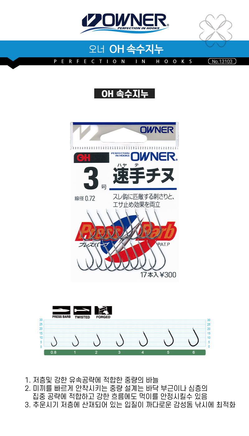 [오너] 감성돔바늘-속수지누 / 하야테 치누