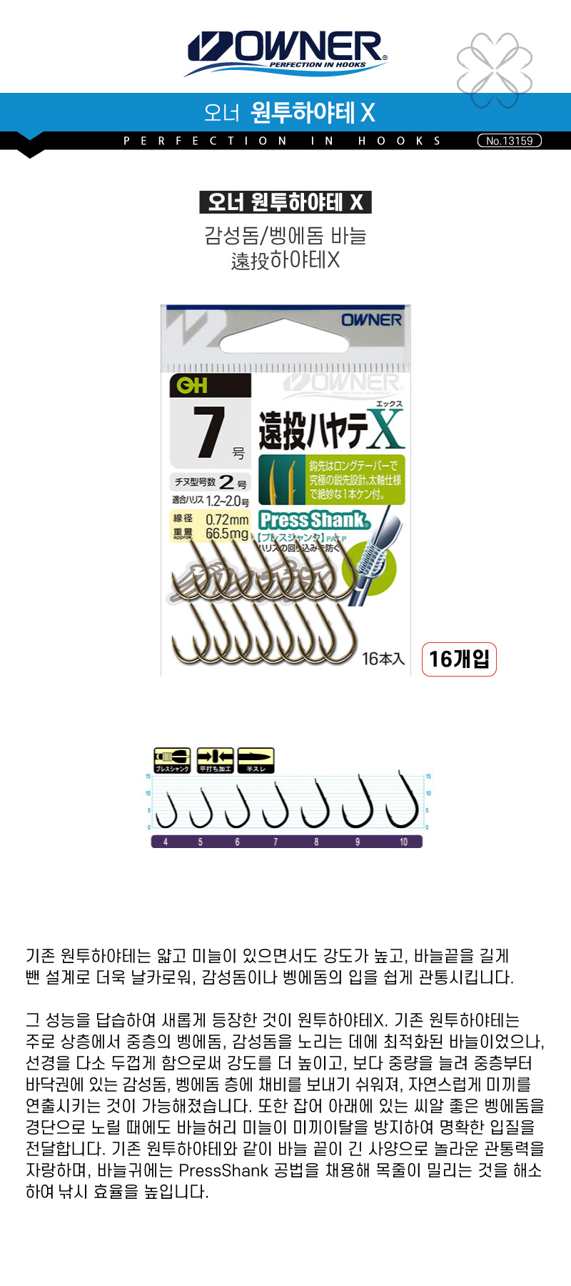 [오너] 감성돔/벵에돔바늘-원투하야테X