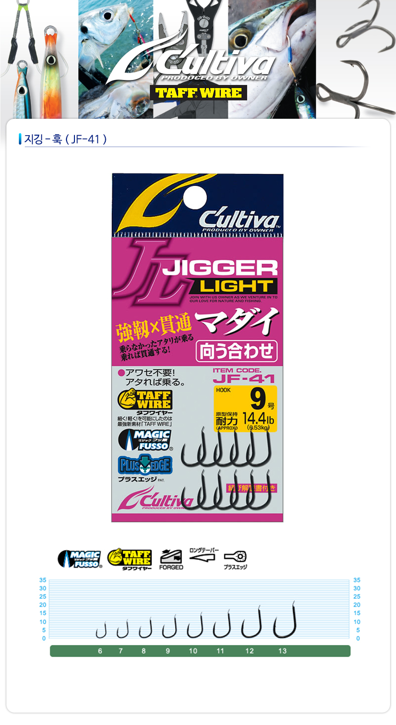 [컬티바] 참돔 지깅-훅(JF-41) 지거라이트 마다이