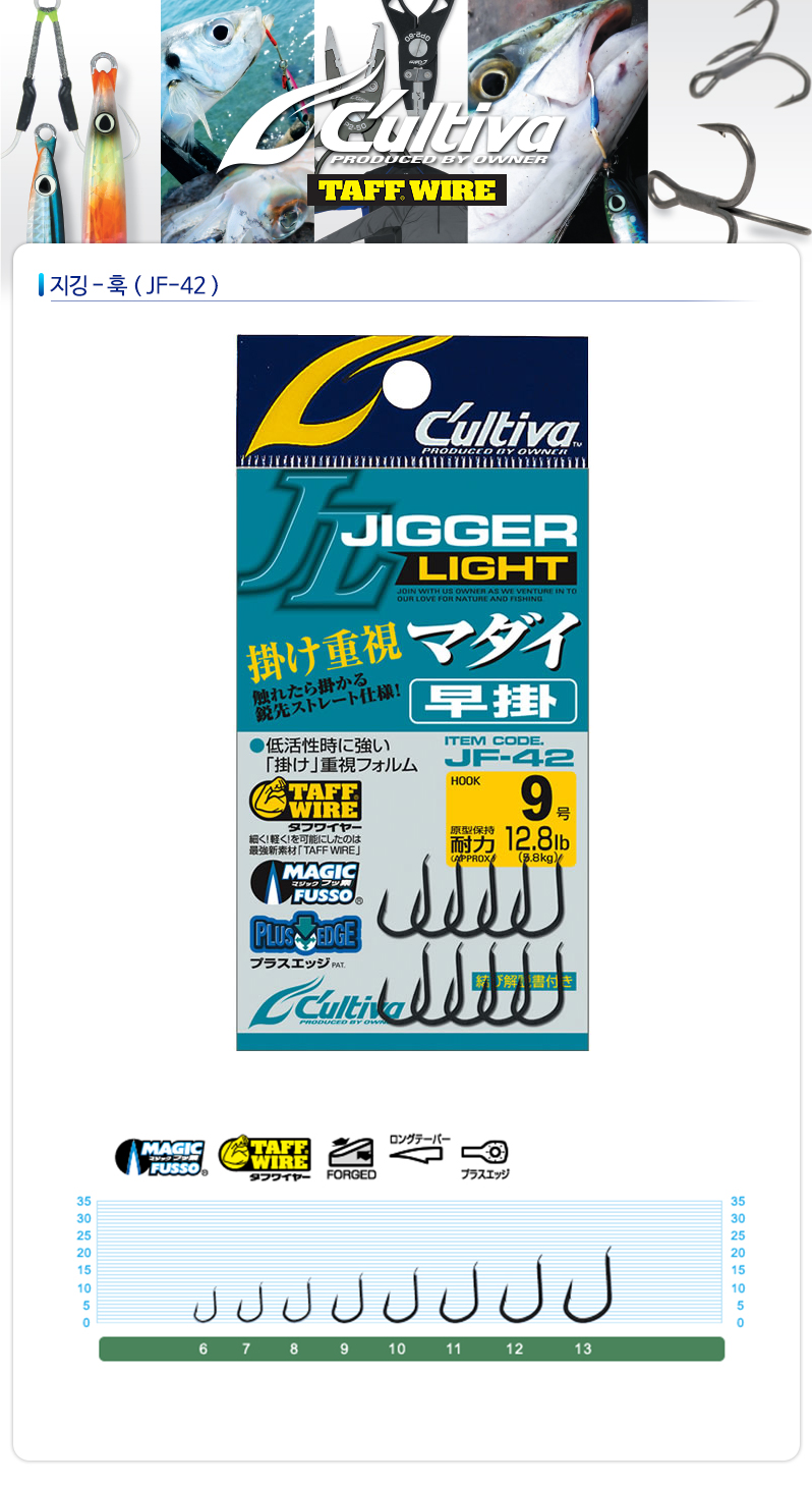 [컬티바] 참돔 지깅-훅(JF-42) 지거라이트 마다이