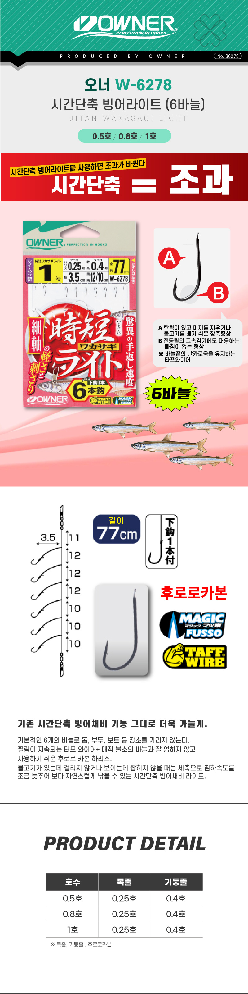 [오너] 빙어-시간단축라이트 묶음채비 6바늘(W-6278)