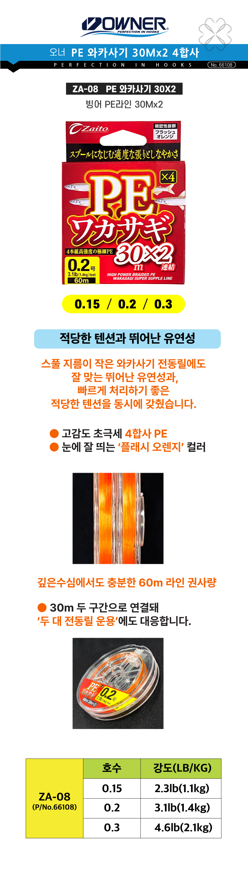 오너 ZA-08 PE와카사기 30Mx2 4합사