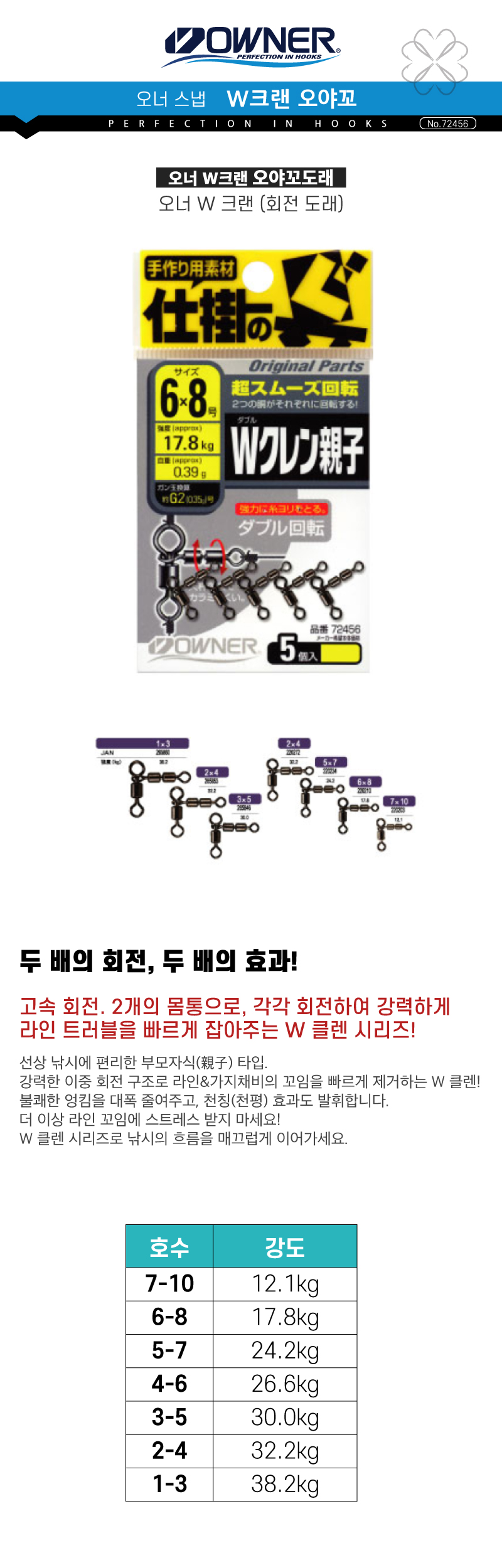 오너 W크랜 더블크랜 오야꼬도래 (가지채비도래)