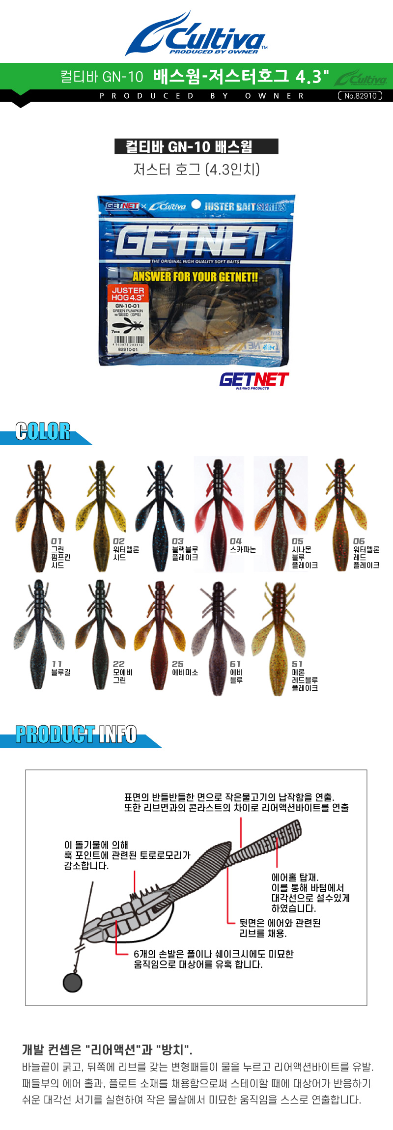 [컬티바]배스웜-저스터호그 (GN-10) 4.3인치