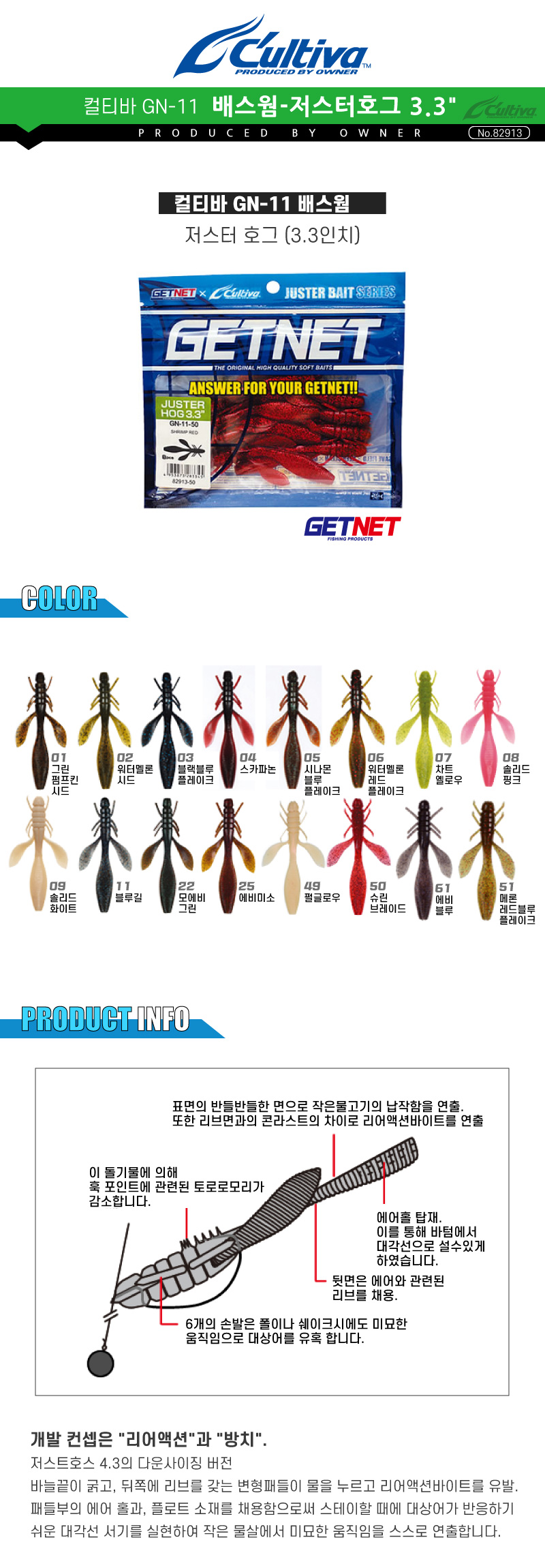 [컬티바]배스웜-저스터호그 (GN-11) 3.3인치