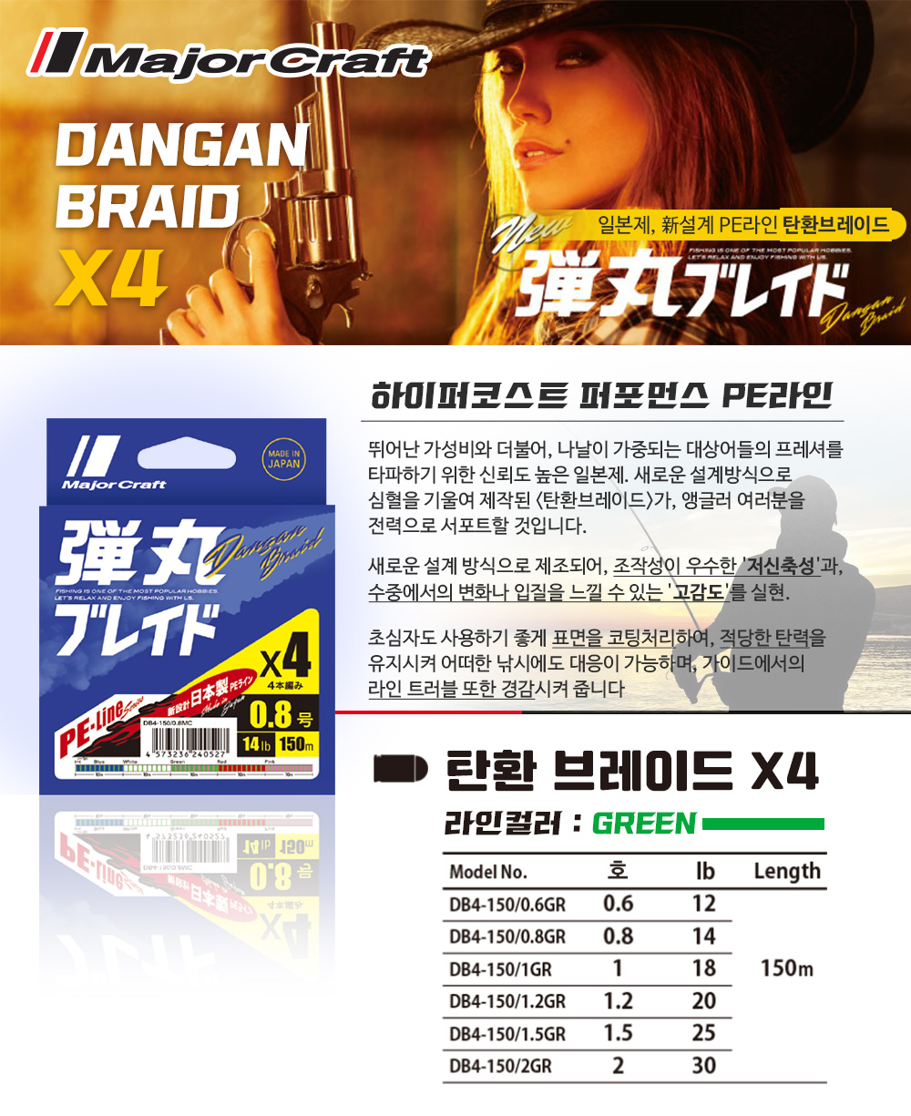 [메이저크래프트] DANGAN BRAID(x4) 150MGreen Color