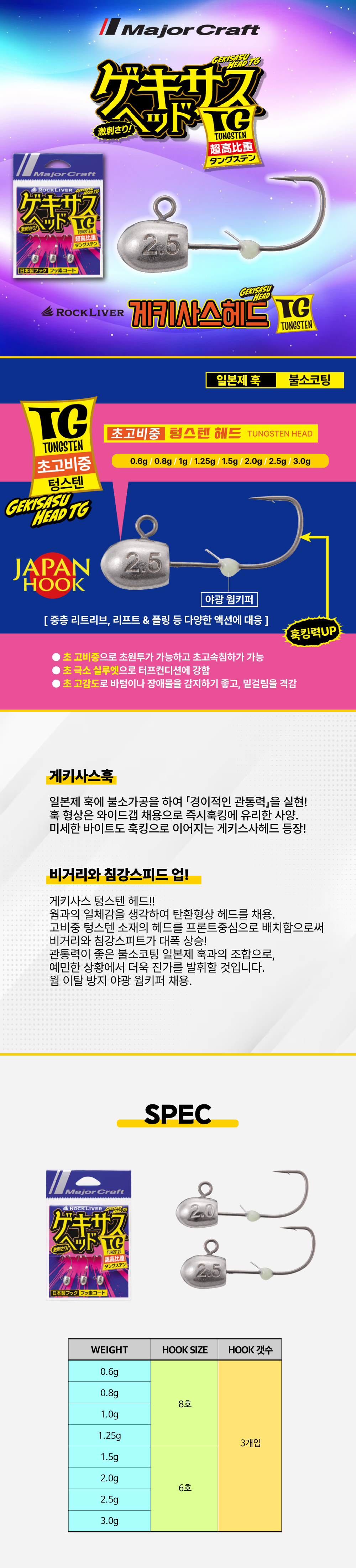 [메이저크래프트] 게키사스헤드TG 텡스텐 볼락 아징 라이트게임 지그헤드 GEKISASU HEAD TUNGSTEN