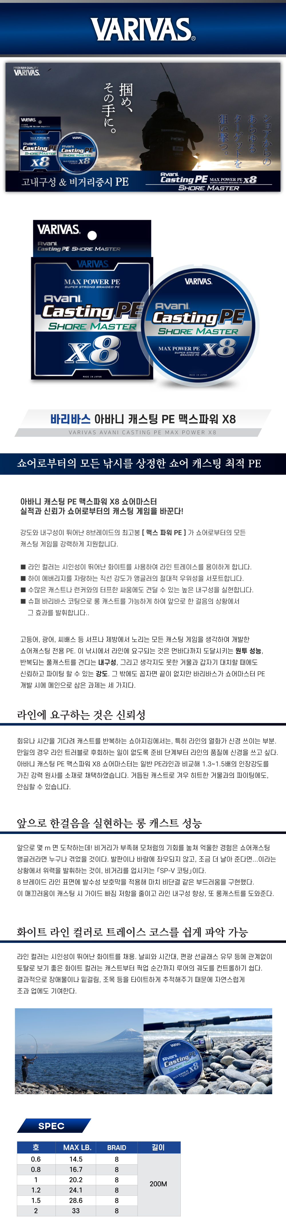 바리바스 아바니 캐스팅 PE 맥스파워 X8 쇼어 마스터 200M