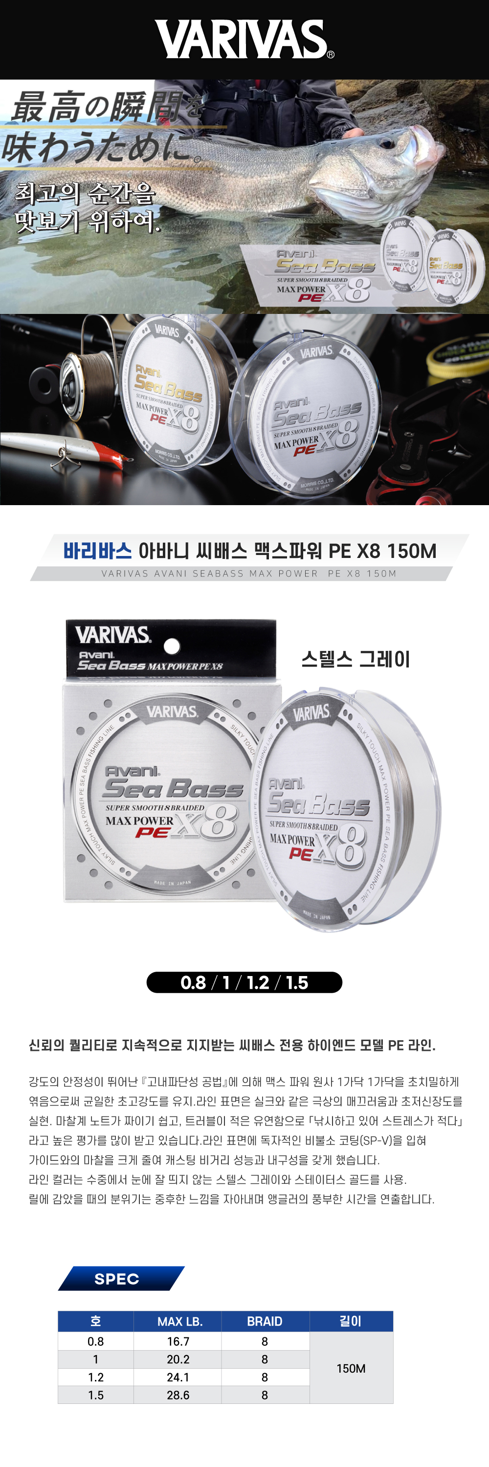 바리바스 아바니 씨배스PE 맥스파워 X8 스텔스 그레이 150M