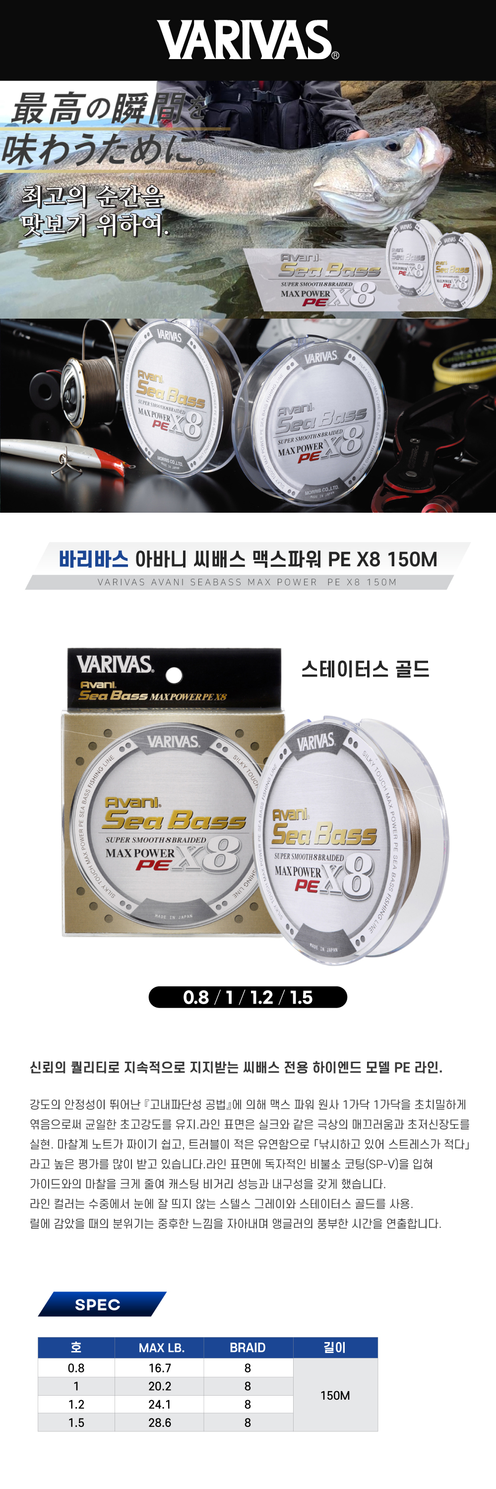 바리바스 아바니 씨배스PE 맥스파워 X8 스테이터스 골드 150M