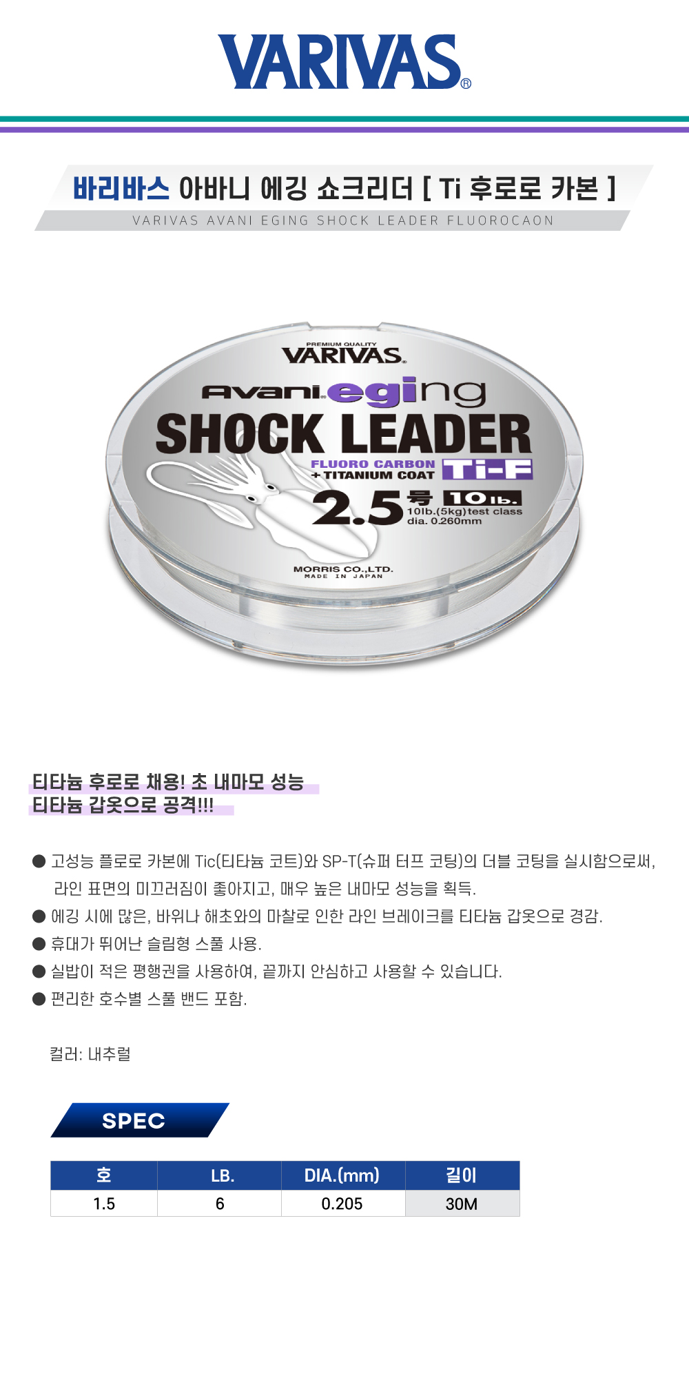 바리바스 아바니 에깅 쇼크리더 Ti 후로로카본 30M
