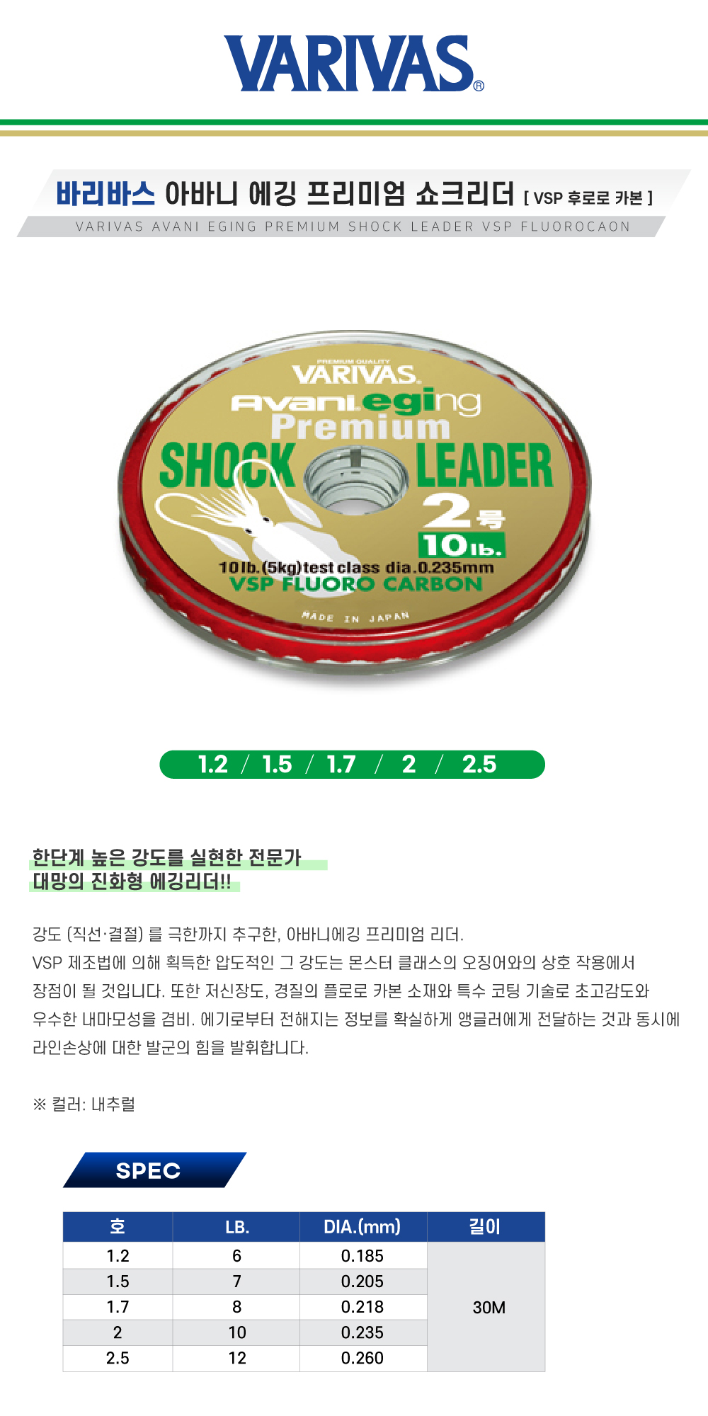 바리바스 아바니 에깅 프리미엄 쇼크리더 VSP 후로로카본 30M