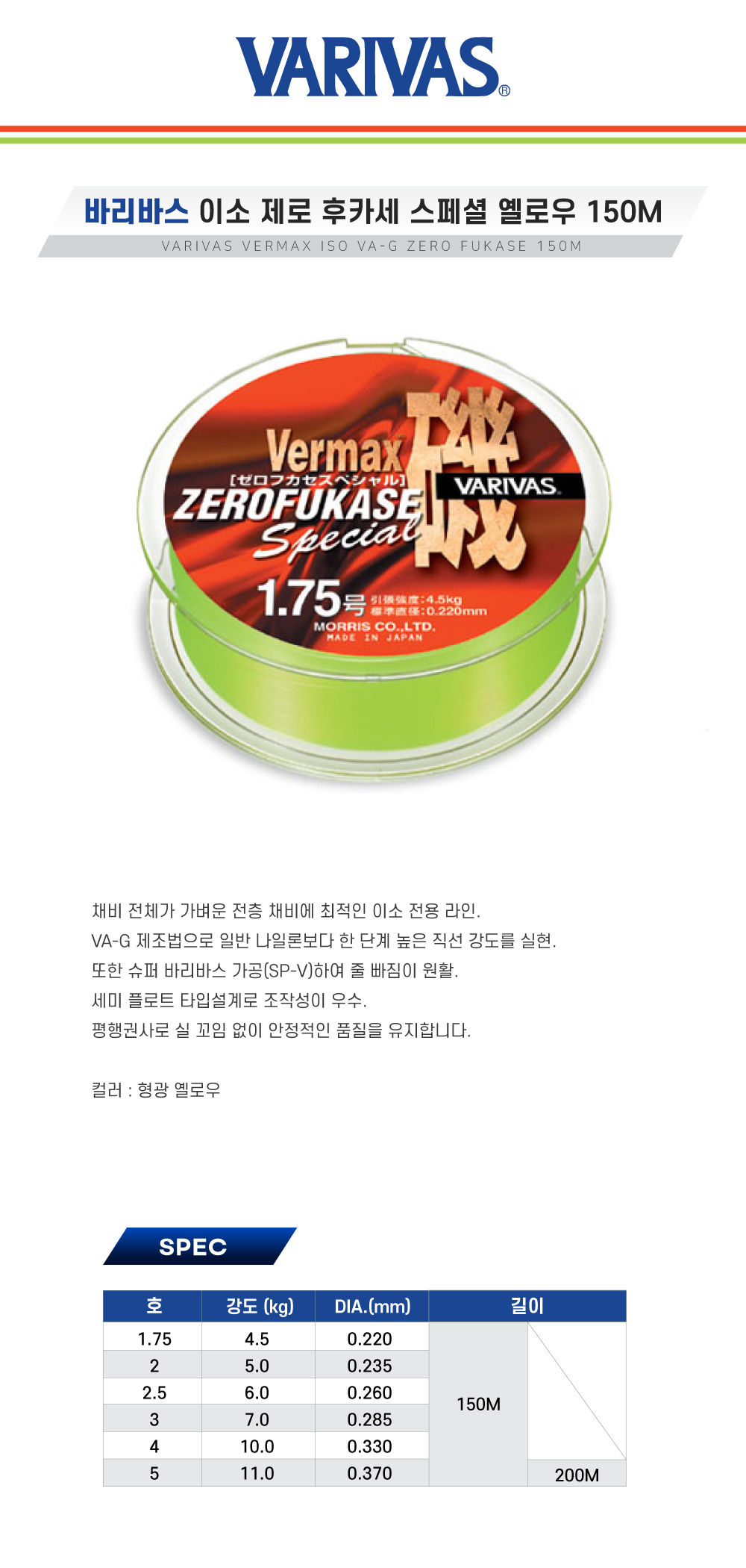 바리바스 버맥스 이소 제로후카세 스페셜 옐로우 150M