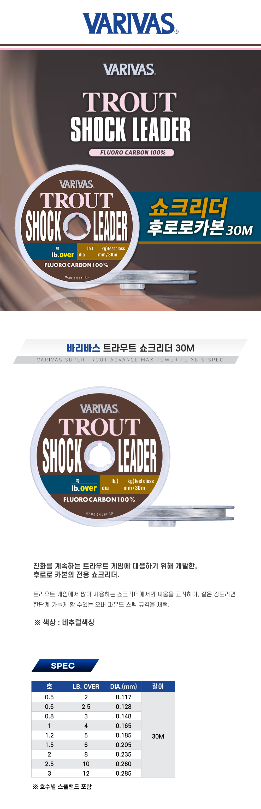 바리바스 트라우트 쇼크리더 후로로 Trout Shock Leader FLUORO 30m