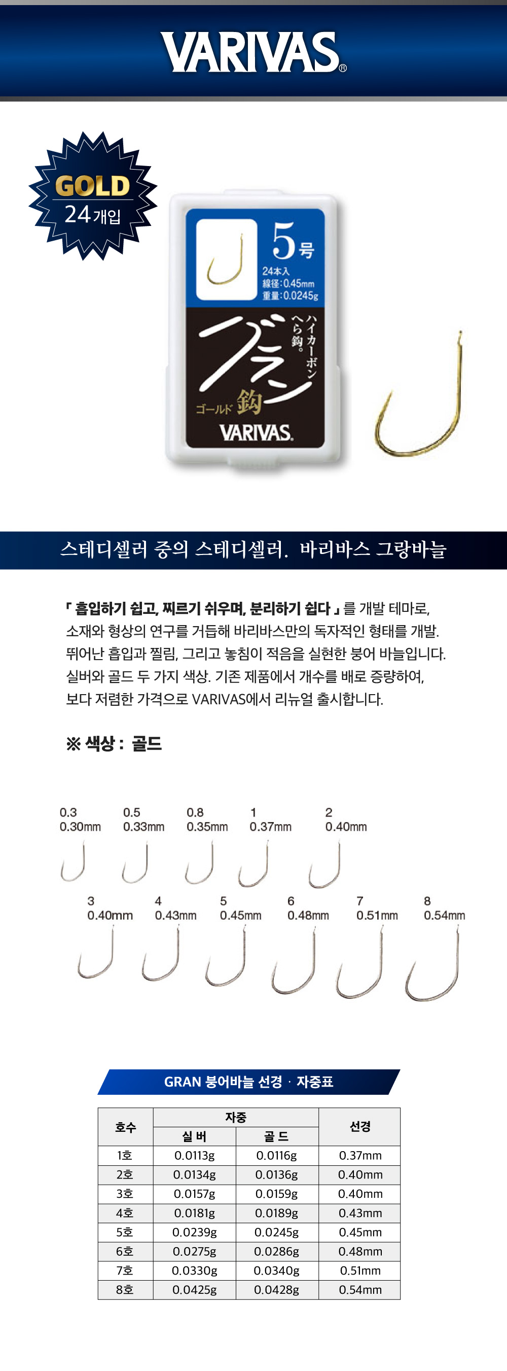 바리바스 그랑바늘 골드 VARIVAS Gran Hooks GOLD
