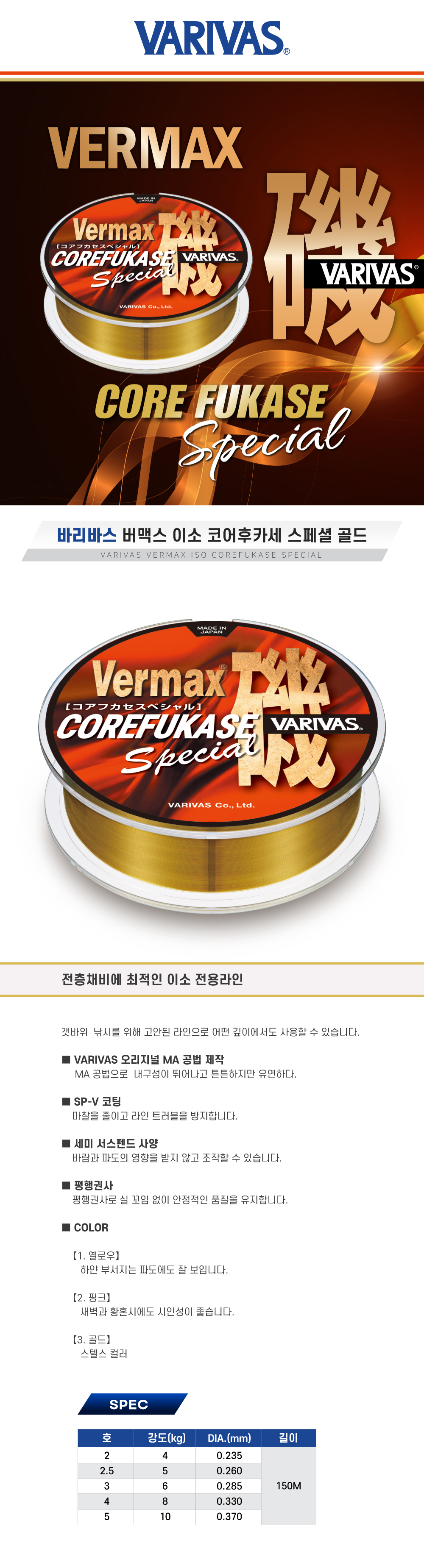바리바스 버맥스 이소 코어후카세 스페샬 골드 Vermax Iso COREFUKASE SPECIAL gold 150M