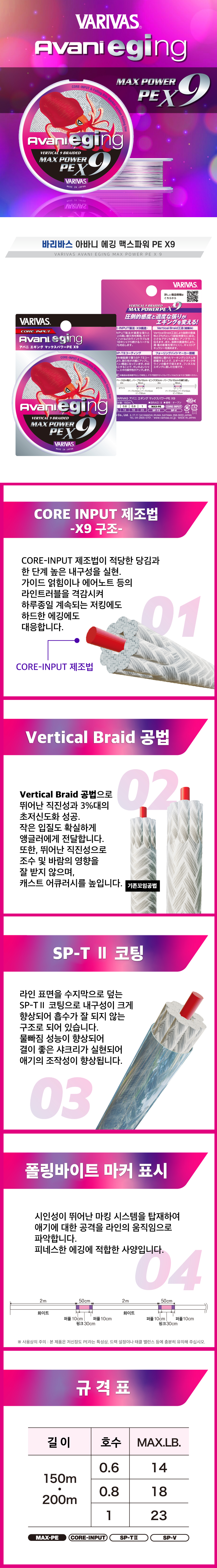 바리바스 아바니 에깅 맥스파워 X9 9합사 라인 150m 200m (0.6호/0.8호/1호)
