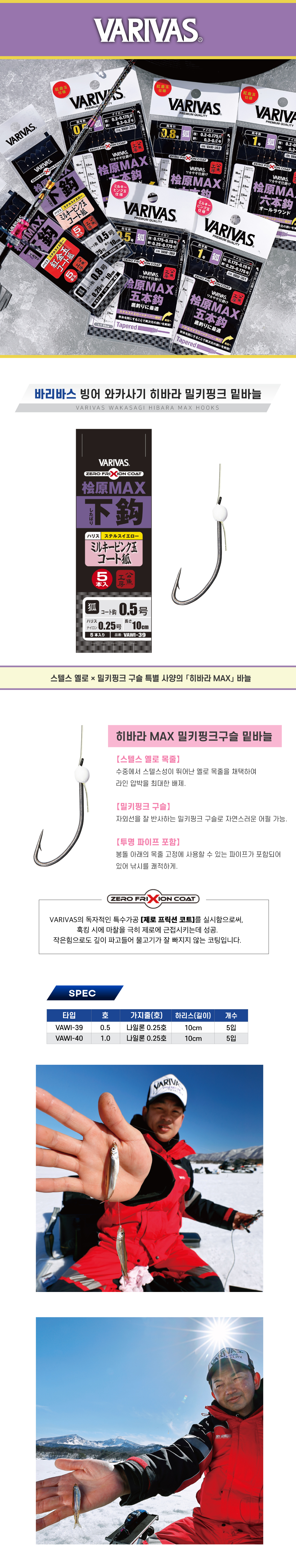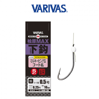 바리바스 빙어바늘 와카사기 히바라 맥스 밑바늘 5바늘 (밀키핑크구슬코팅) VAWI-39 VAWI-40