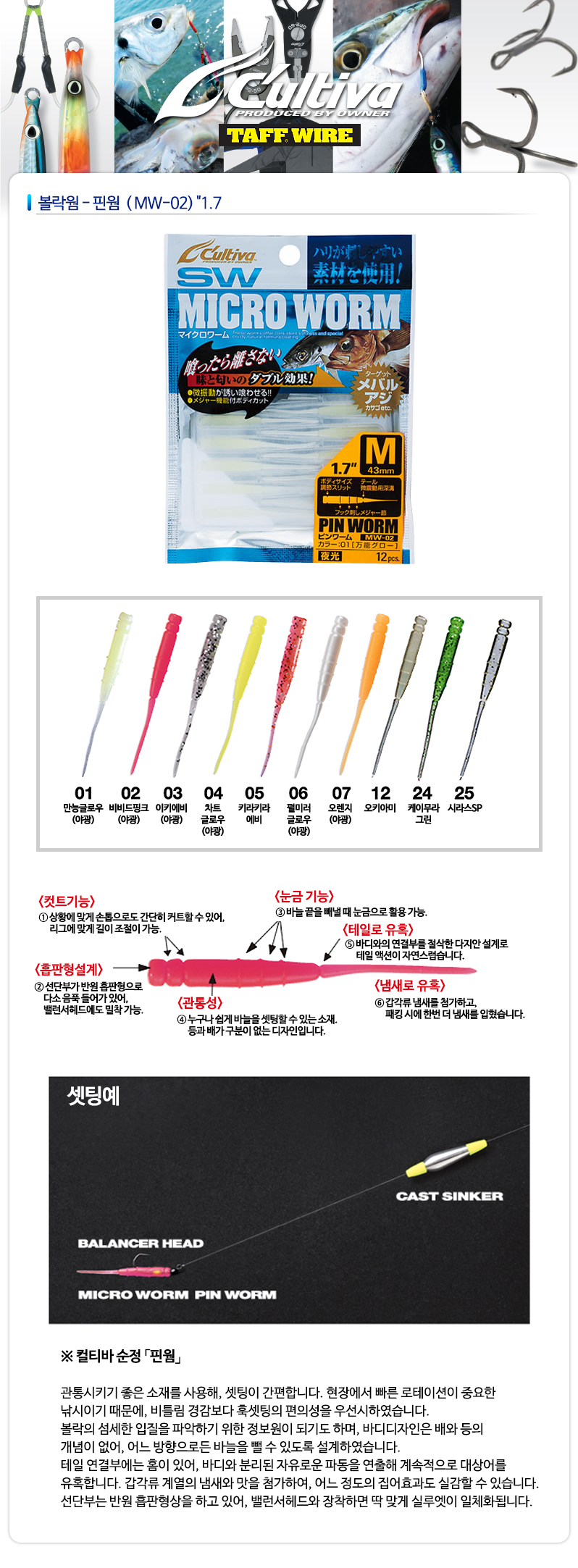 [컬티바] 볼락웜-마이크로웜 핀웜(MW-02)"1.7